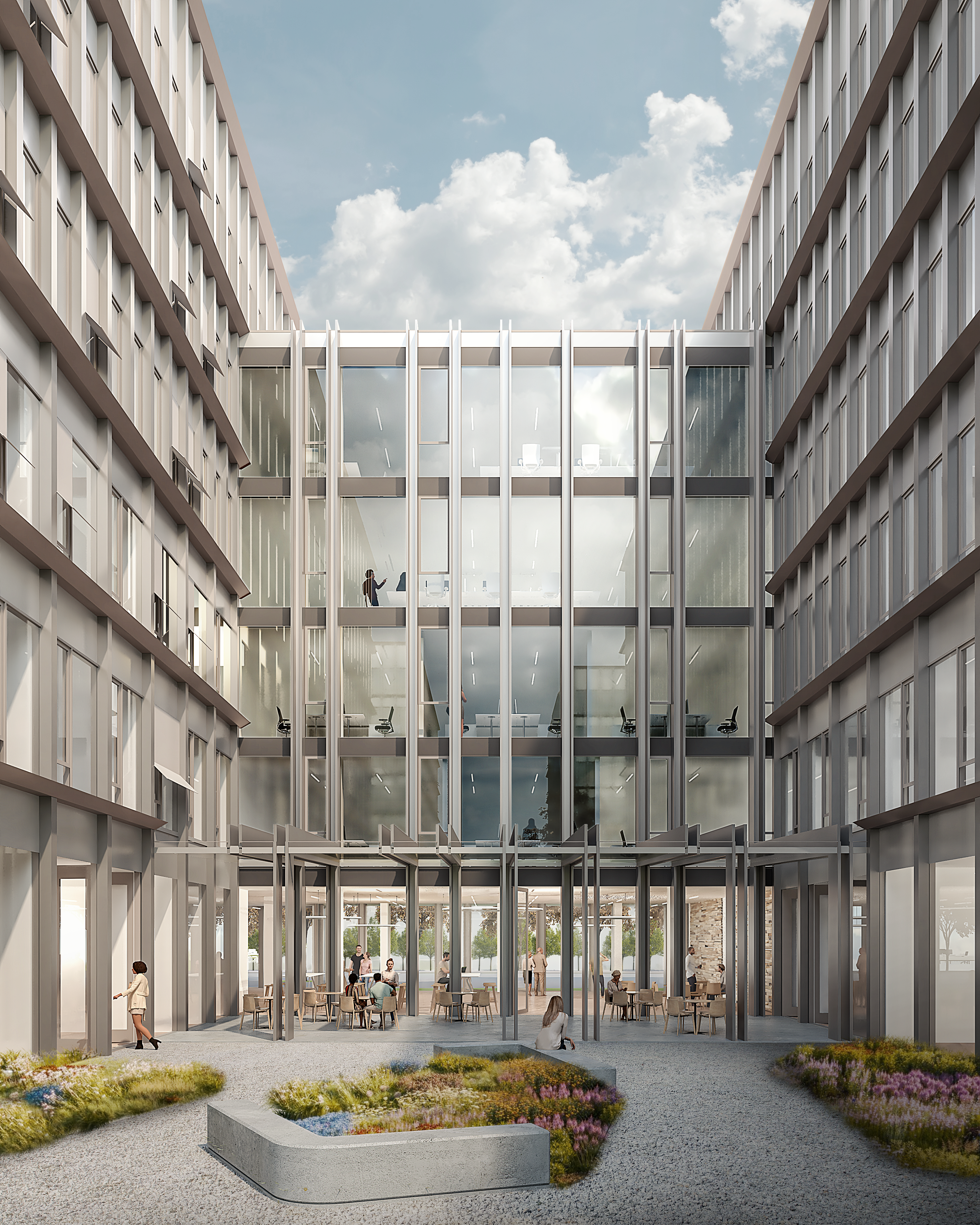 Die Architektur des Gebäudes zeichnet sich durch eine stützenfreie Bauweise aus, welche eine flexible Gestaltung der Grundrisse ermöglicht. Große Raum- und Deckenhöhen sorgen für ein offenes und modernes Arbeitsumfeld. Die Ausstattung umfasst modernste Technologien, darunter Klimasplittanlagen, Luftwärmepumpen und eine Glasfaseranbindung, die den höchsten Anforderungen an Effizienz und Nachhaltigkeit gerecht werden.